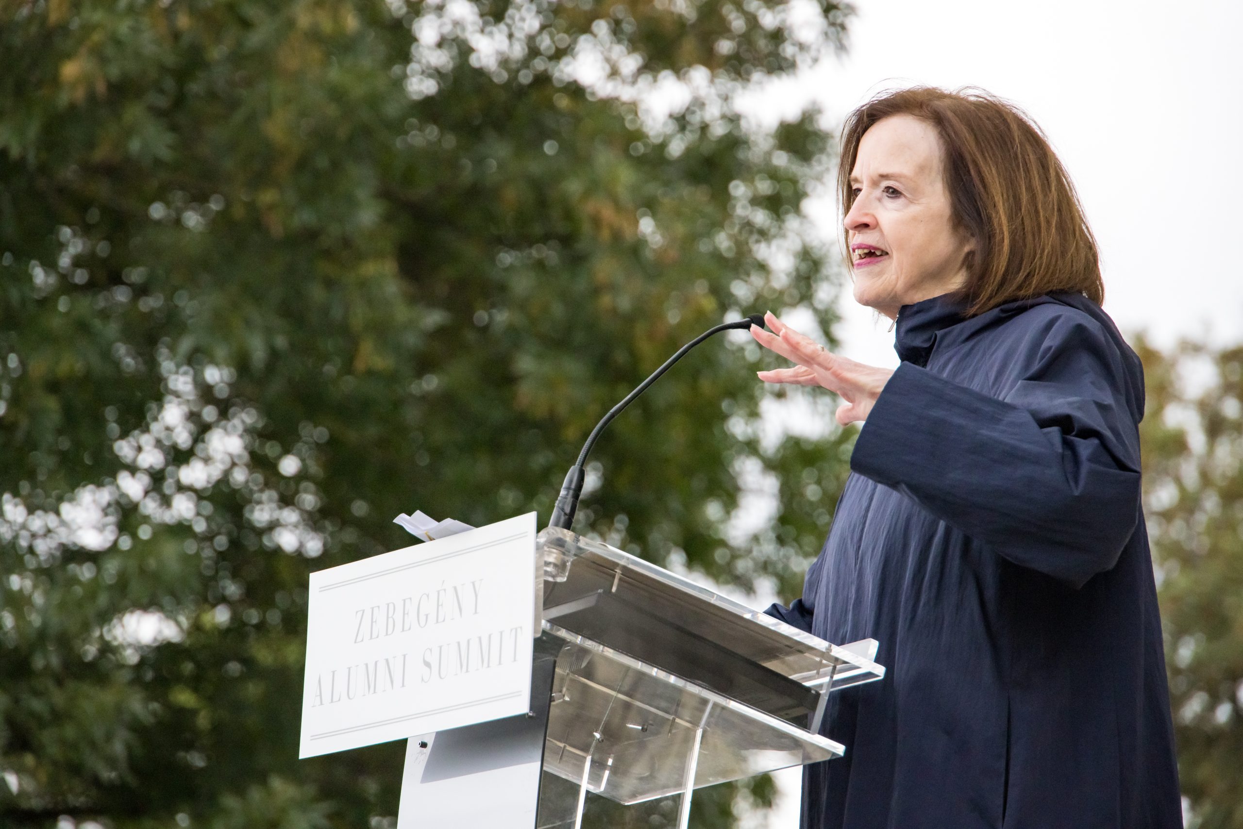 Opening the event, Christopher Ball, Széchenyi Chair in Economics and Director of Quinnipiac University’s Central European Institute (CEI) welcomed guests back to Zebegény, celebrating its 15th Anniversary. He talked about Quinnipiac’s scholars and programs, progress, and expansion of their HABL Program. Chris announced the upcoming launch of “QU in BP”, a special program for Quinnipiac students to come to Budapest where they study and work/intern at companies in Hungary.