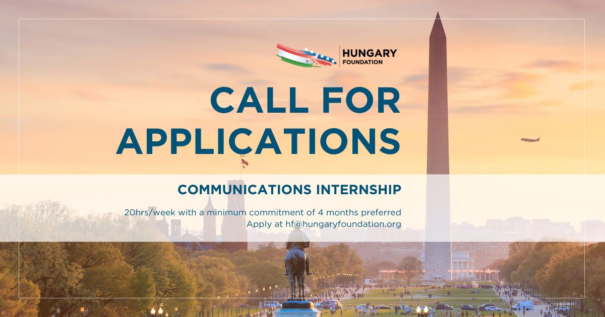 Hungary Foundation invites applications for one internship position on a rolling basis. The position is unpaid and requires a commitment of 20 hours per week. The internship will be set up as remote work. DC area residency for the duration of the internship is a plus but not a requirement. The ideal candidate is an undergraduate or graduate student in public relations, marketing, communications, international affairs, journalism, or government affairs.