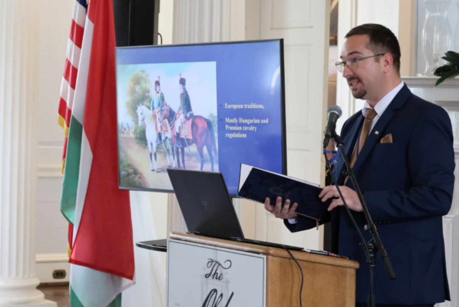 A highlight of the event was a remarkable presentation by SC Revolutionary War Trust and SC250 Commission Member USA MG JB Burns (ret.) who gave an uplifting overview of Hungary’s military contributions to the transatlantic alliance based on his personal experiences. He also explained that the most important influence on the cavalry in the South was that of the Hungarian Colonel Commandant: