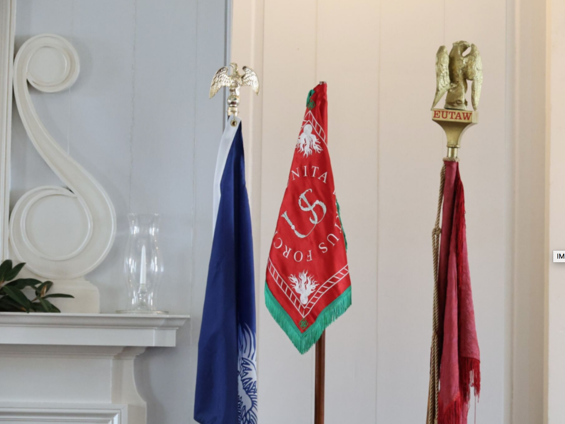 Scarlett Brissie sang the Star Spangled Banner, after which the Washington Light Infantry (WLI) one of the America’s oldest militia units performed the presentation of colors. WLI member LTC Mark McGee in his remarks explained the historic significance of the Eutaw Flag which he has graciously brought for the occasion. The Eutaw flag is the most famous battle flag in the United States, and probably the only battle flag extant that was in actual service in the War of Independence.