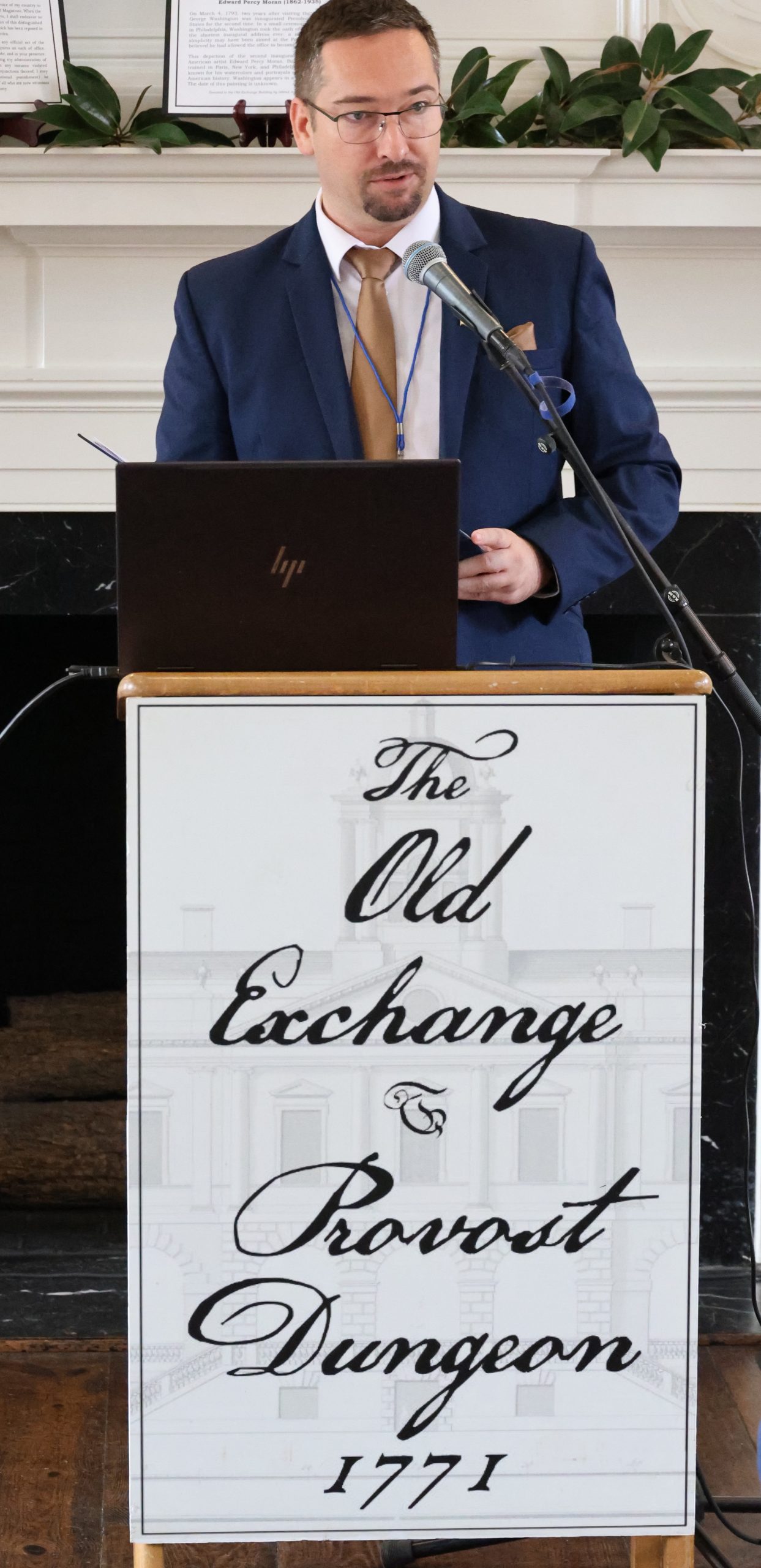 Tony Youmans gave warm welcome on behalf of the Old Exchange and Provost. In his thoughtful introductory remarks, he reminded guests of the historic role our venue played in the Revolution.