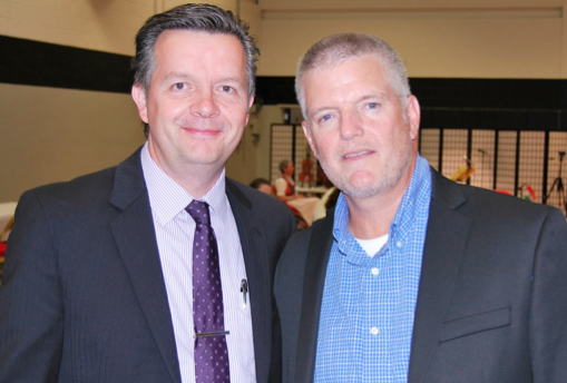 The commemoration of the revolution continued in the Cistercian Preparatory School’s Gymnasium, where the history of the uprising was presented in Hungarian by Péter Váli, the Vice President of the MMCC, with English translation of the presentation in form of a slide show projected by Pesti Ilona.