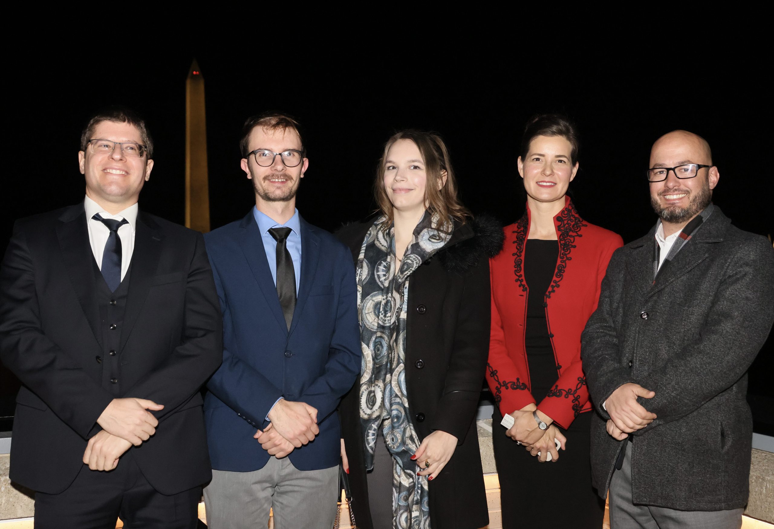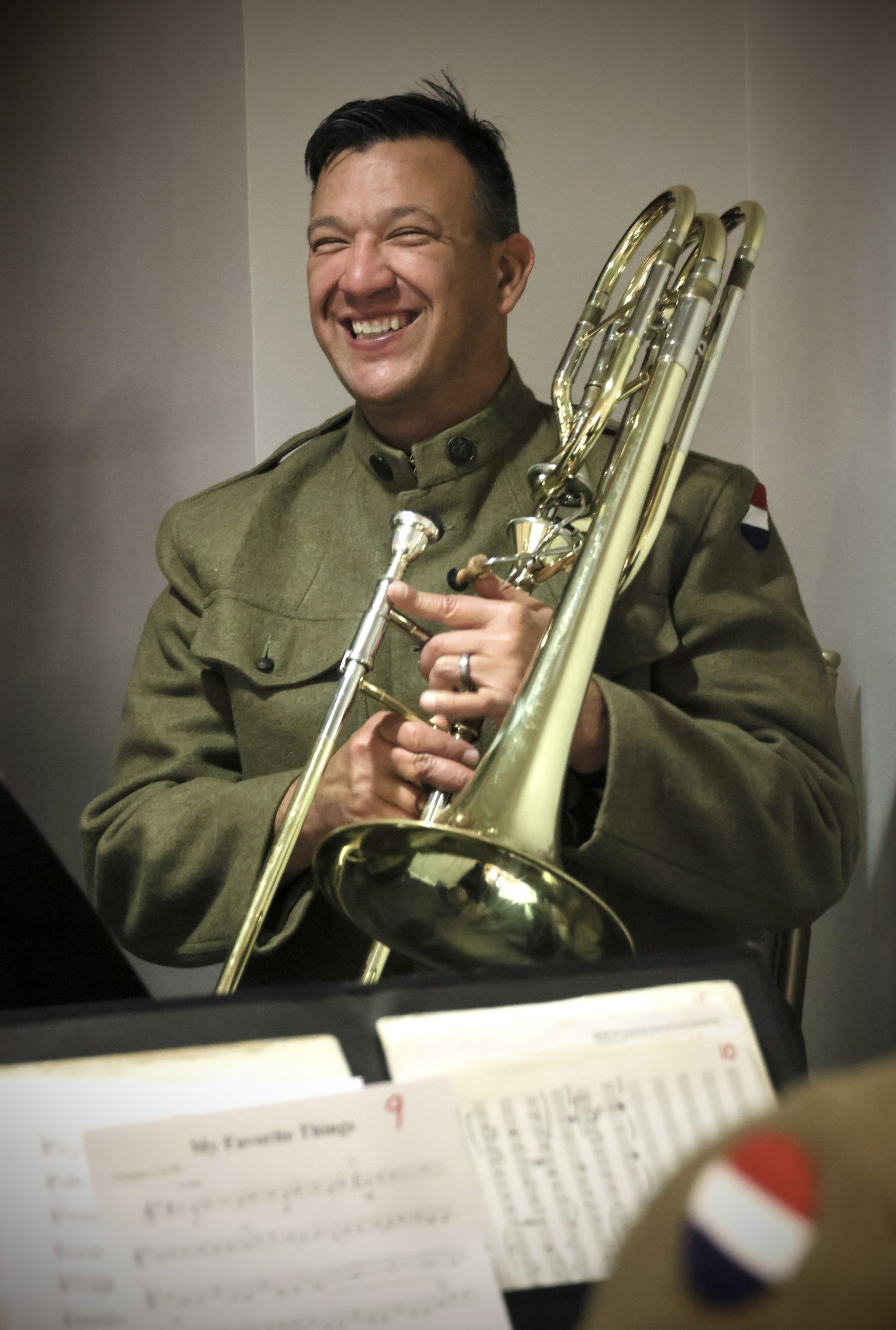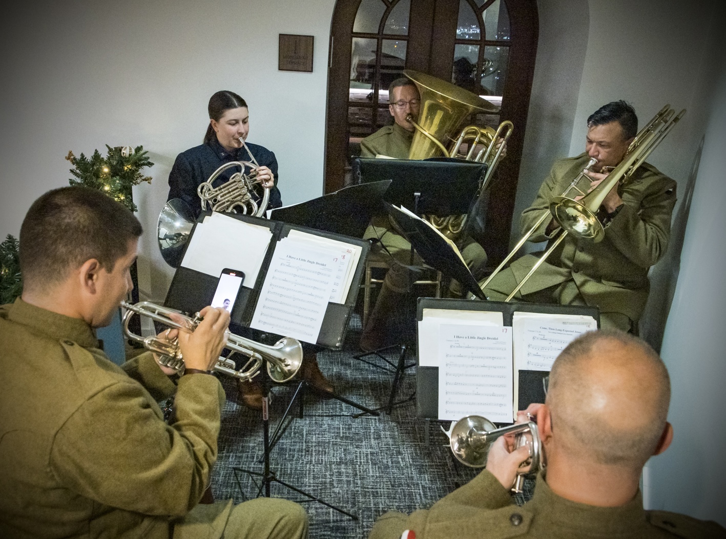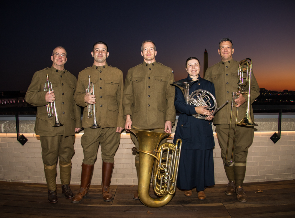 Co-Chairs of the Doughboy Foundation Denise VanBuren and Dan Dayton, author Attila Szalay-Berzeviczy, President of the Doughboy Foundation Jari Villanueva, Hungary Foundation Executive Director Anna Smith Lacey and Doughboy Foundation’s period brass quintet