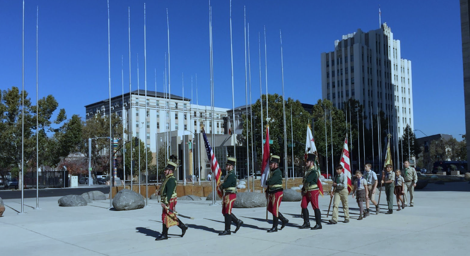 Our First California Hussar Regiment and the San Francisco Bay Scout troops presented the flags and saluted during the flag raising and Father Maurus Nemeth and Reverend Gabor Magyari-Kope blessed the Flag Raising ceremony and our Hungarian community in both English and Hungarian.