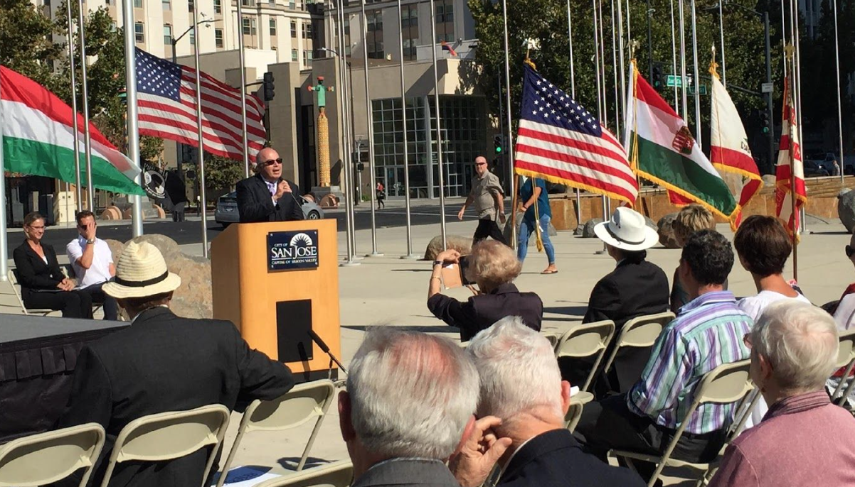 The Hungarian Heritage Foundation hosted a Flag Raising Ceremony on Friday, October 21st at San Jose’s City Hall. The event commemorated the 1956 October Revolution, celebrated the 60th Anniversary and recognized the Hungarian-American community in the greater San Francisco Bay Area. This celebration was co-hosted and supported by the San Jose City Hall Council-member Johnny Khamis.