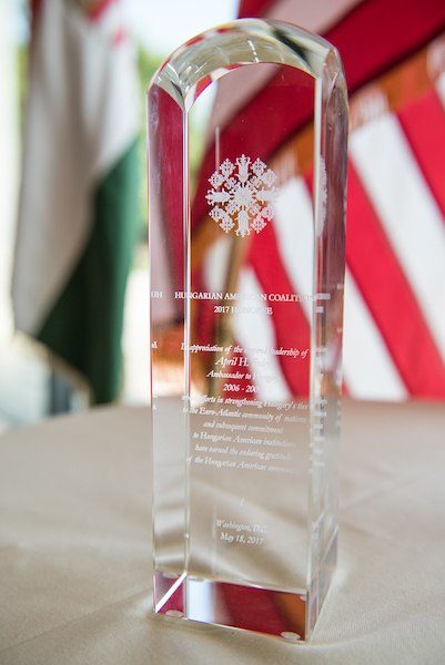 On May 18, 2017, the Hungarian American Coalition honored HIF Chairman of the Board Ambassador April H. Foley at its 13th annual Gala Dinner. Ambassador Foley received the award for her significant contributions to US – Hungary relations and to the Hungarian American community through her leadership of The Hungary Foundation.