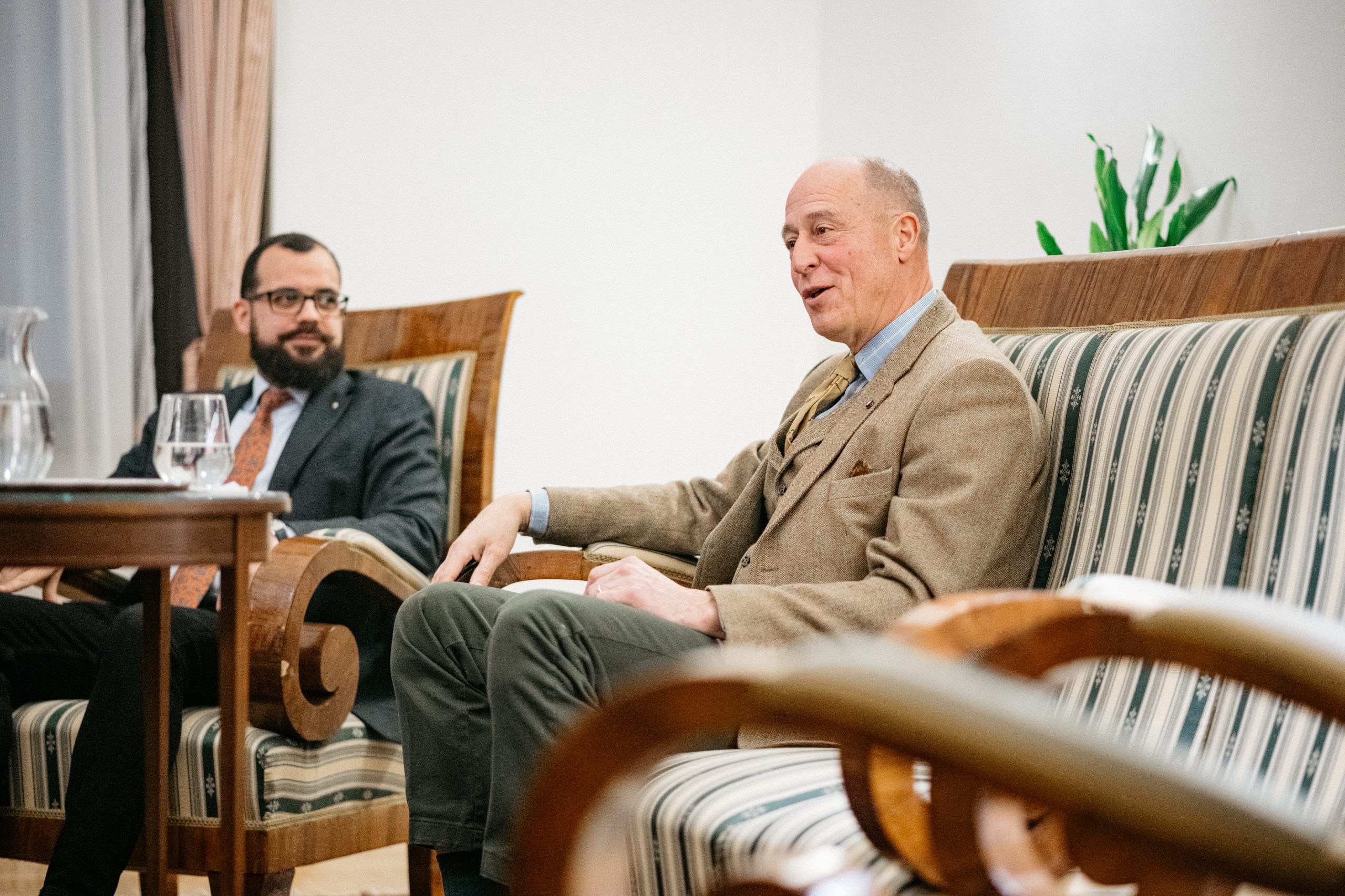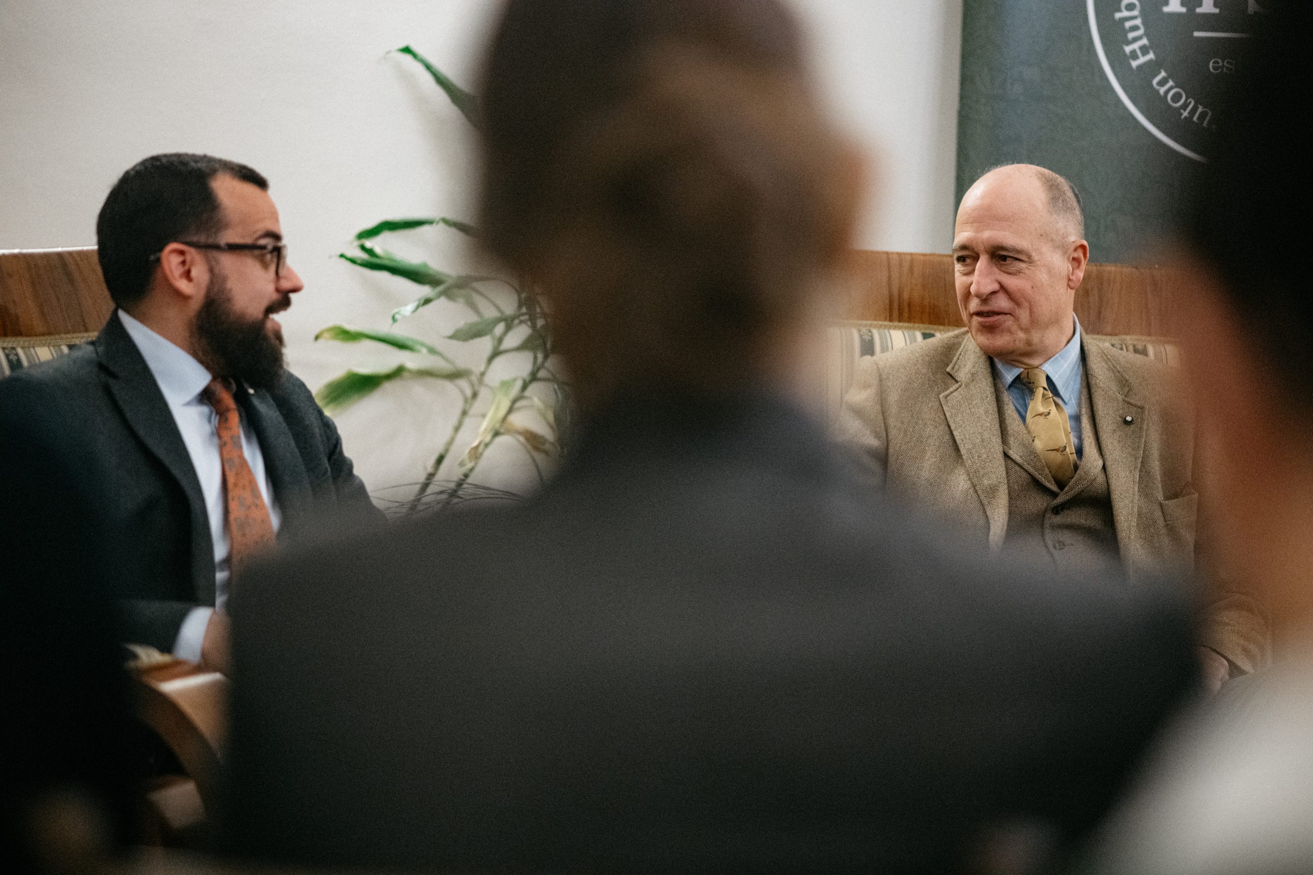 The evening began with an enlightening discussion with Kristóf Szabadhegyi, American-Hungarian businessman and the President of the Hungarian Association of the Order of Malta, led by HF alumnus Dr. Bálint Kovács (Liberty Bridge, 2022/23). Born and raised in Staten Island, NY, Mr. Szabadhegyi shared how his Hungarian identity was nurtured throughout his upbringing. It came as no surprise that he felt at home when he eventually returned to Hungary in 1992, building Deloitte’s regional presence together with his brother. Holding a degree in computer engineering, he offered insights into technological development in the U.S. in the 1970s and 1980s, yet he was equally comfortable discussing precision farming, having headed Keve, an agricultural business, since 2004. Encouraging his audience, he stated that ambition and discipline lead to success in Hungary just as much as anywhere else. As advice to his eager listeners, he shared a motto passed down from his father: “Use your head” – that is, assess the factors rationally and make an informed, logical decision.