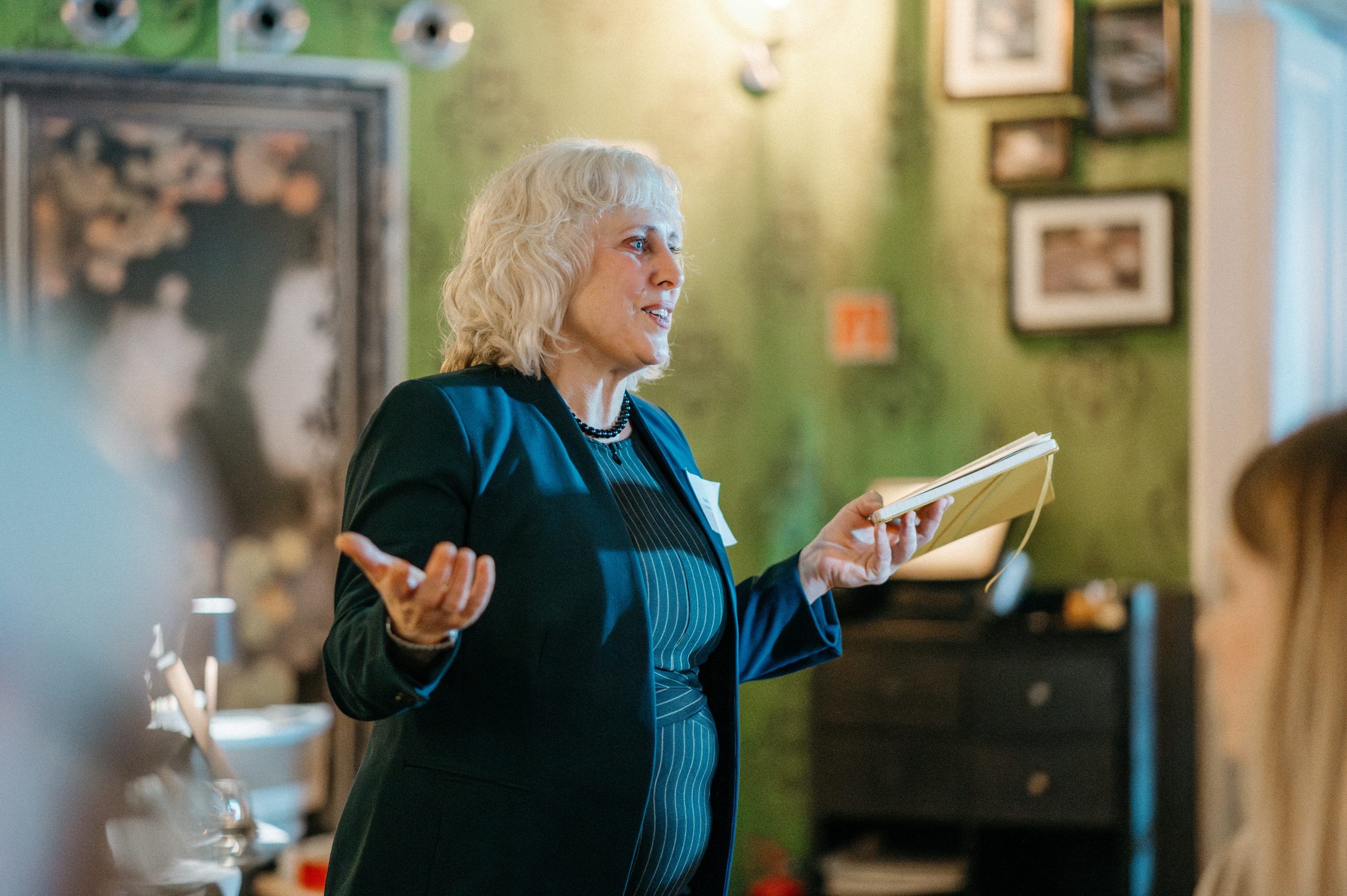 The event’s program highlighted an exciting recent development for the Hungary Foundation: the establishment of an official alumni network, anchored by the creation of a board of directors, or the Hungary Foundation Alumni Board (HFAB). HFAB Director Kelli Buzzard gave brief remarks, in which she conveyed the new board’s mission of promoting strong commitment between alumni and the Hungary Foundation (HF) fostering camaraderie among HF alumni across all programs and creating regular career networking opportunities among alumni on both sides of the Atlantic.