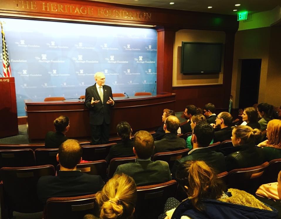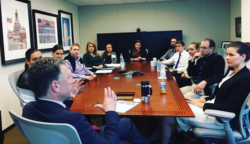 The think tank visits focused on understanding how independent civil society organizations shape the American policy making process. Dr. Roger Pilon hosted the group at the Cato Institute and focused on the role of the federal courts, Ambassador Kurt Volker at the McCain Institute explained how an innovative approach to think tanks can turn them into effective problem-solvers as do-tanks, Dr. Lee Edwards at the Heritage Foundation explained the evolution of one of America’s oldest think tanks in Washington, Marion Smith, Joshua Dill and Ashlee Moody at the Victims of Communism Memorial Foundation focused on America’s anti-communist foreign policy tradition and human rights advocacy in Washington and on campuses today.
