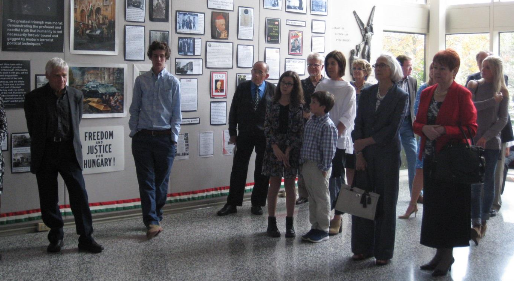 The opening reception of the exhibit was attended by about 70-80 people from the community including several graduates of John Carroll University. One exteneded family in particular brought all the generations since their Grandfather was a 56-er. The younger generation, who did not speak Hungarian also joined the opening in an effort  to show their support and gain understanding of the historic events. The organizers honored the Grandfather by presenting him with the “Spirit of Hungary” history book written by Stephen Sisa.
