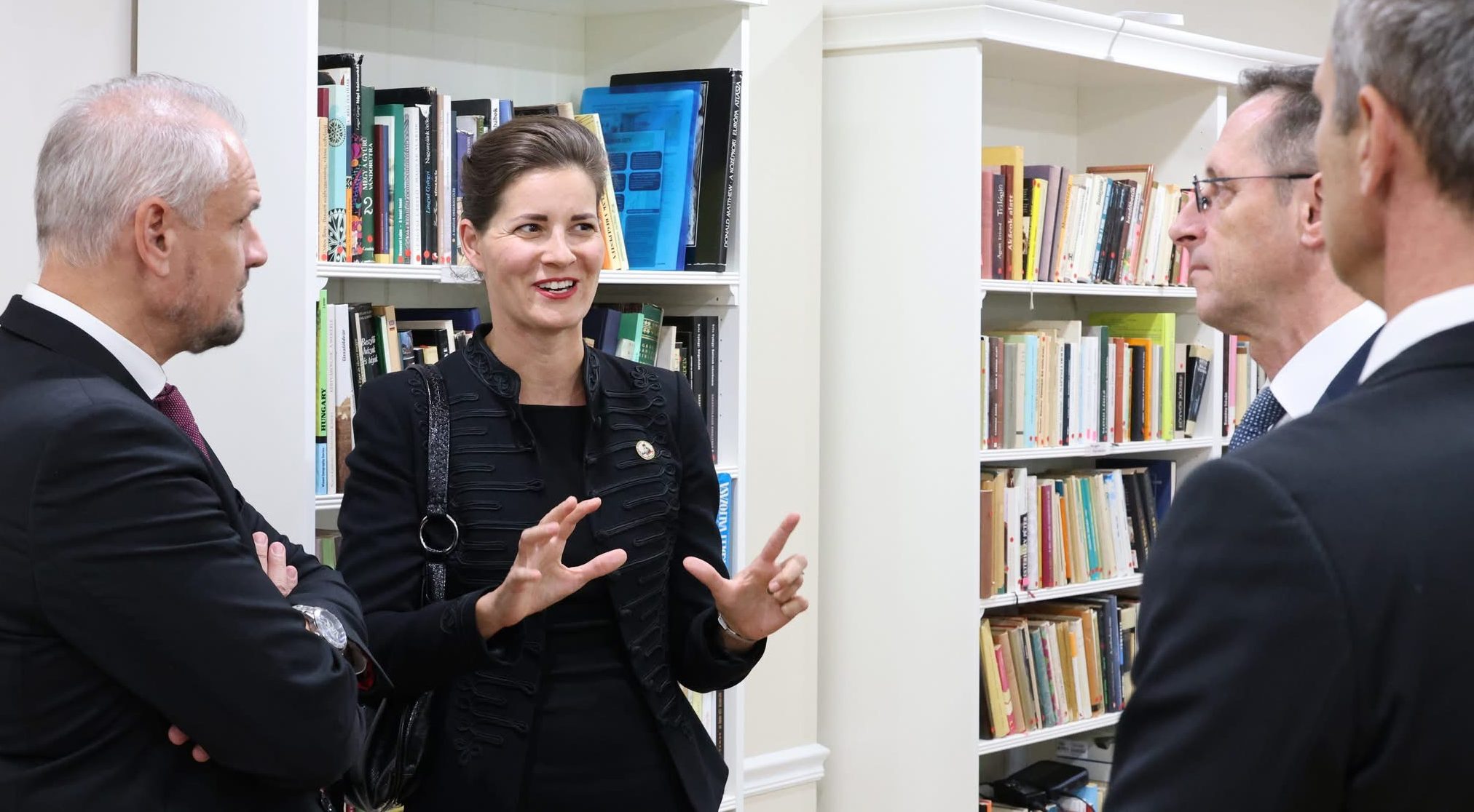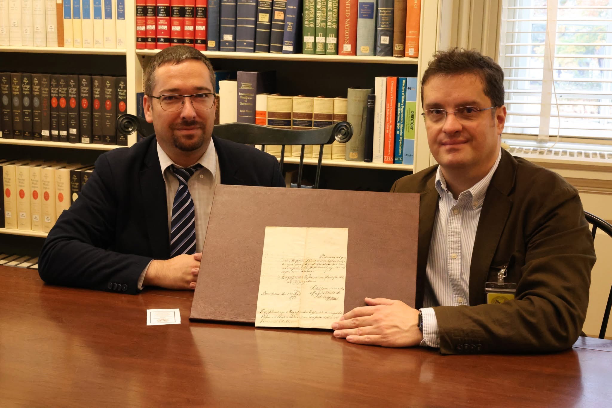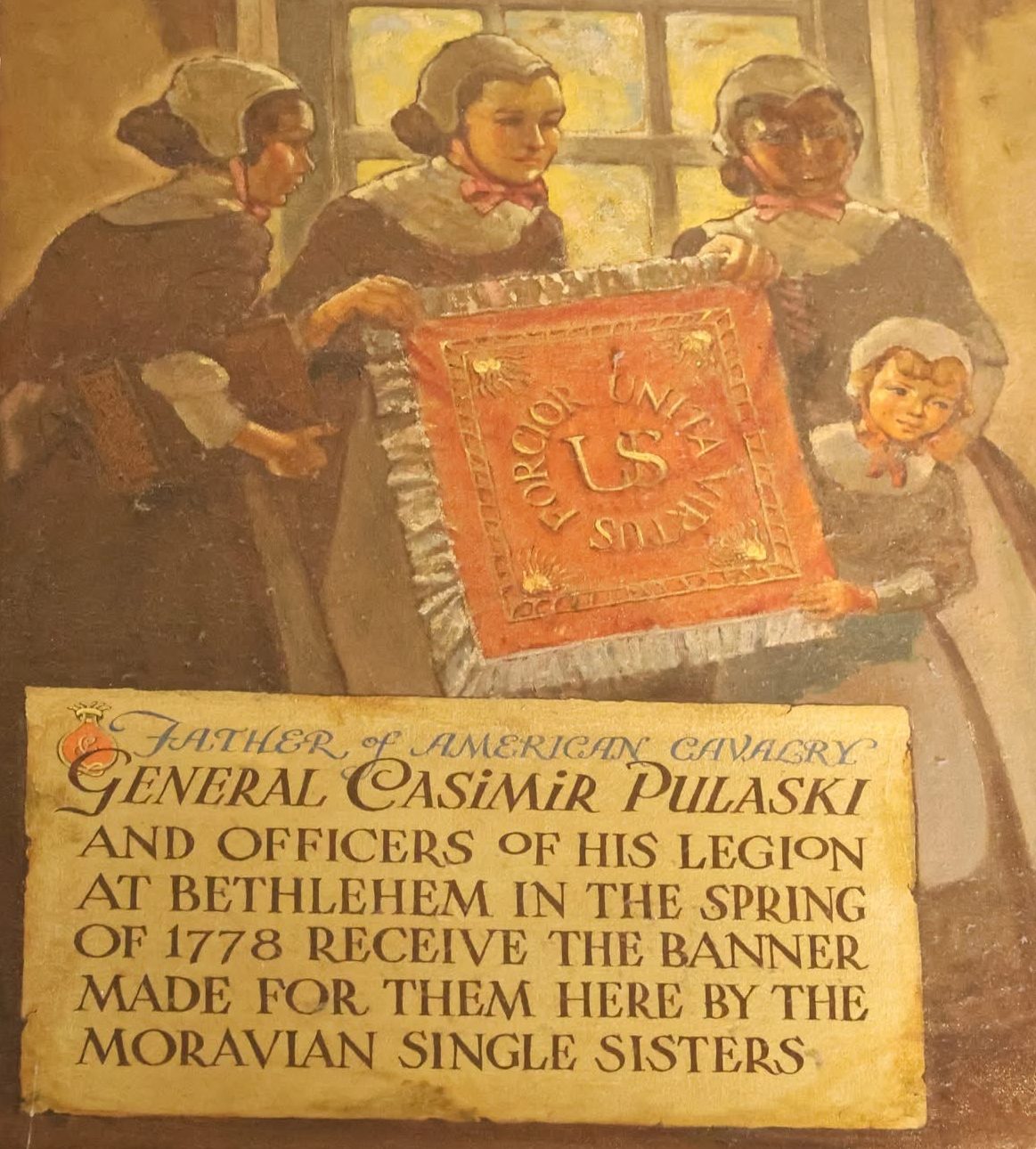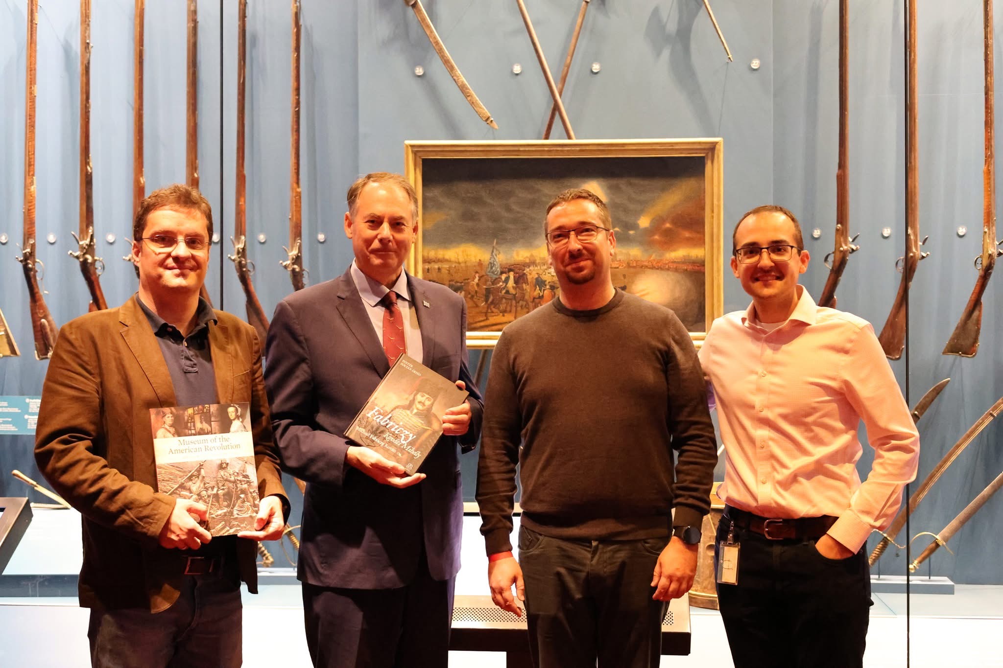 The final leg of the tour on October 31 brought the delegation to Philadelphia’s Museum of the American Revolution. Discussions with museum director Dr. R. Scott Stephenson explored opportunities for collaboration during the America250 celebrations which will include a temporary exhibit on the role of foreigners in the Revolutionary War. The group also had a chance to observe a Michael Kováts commemorative volume and viewed the only surviving Pulaski flag – originally held in Baltimore – currently on loan for the upcoming exhibit. In Bethlehem, the group visited George Gray’s mural in the Hotel Bethlehem which portrays the Pulaski flag’s presentation, and uncovered additional archival material at the Moravian Church Archive linking the flag’s design to Kováts’ Hungarian heritage.