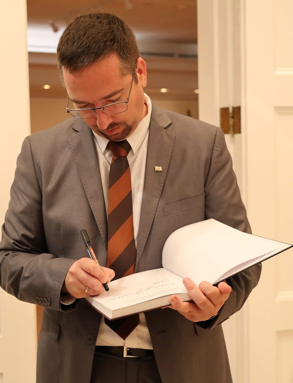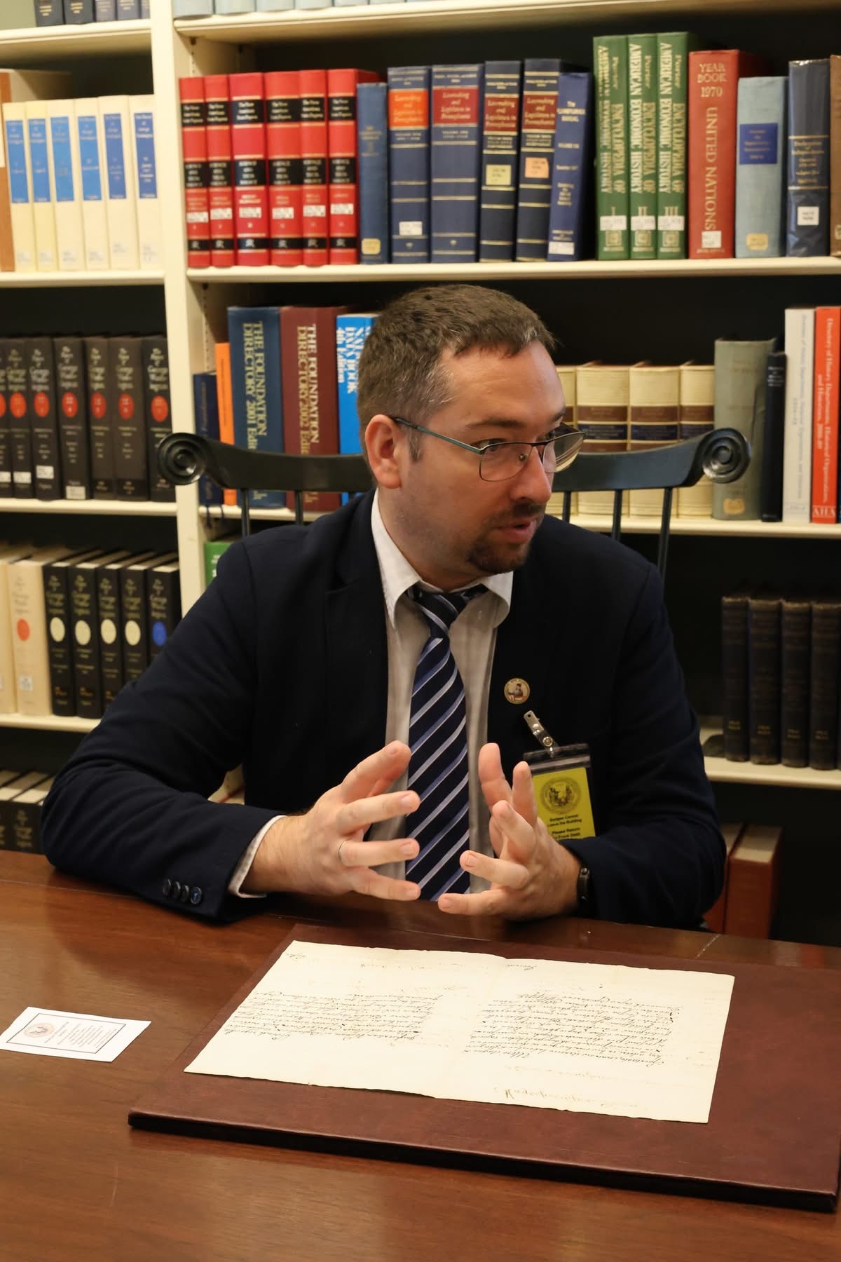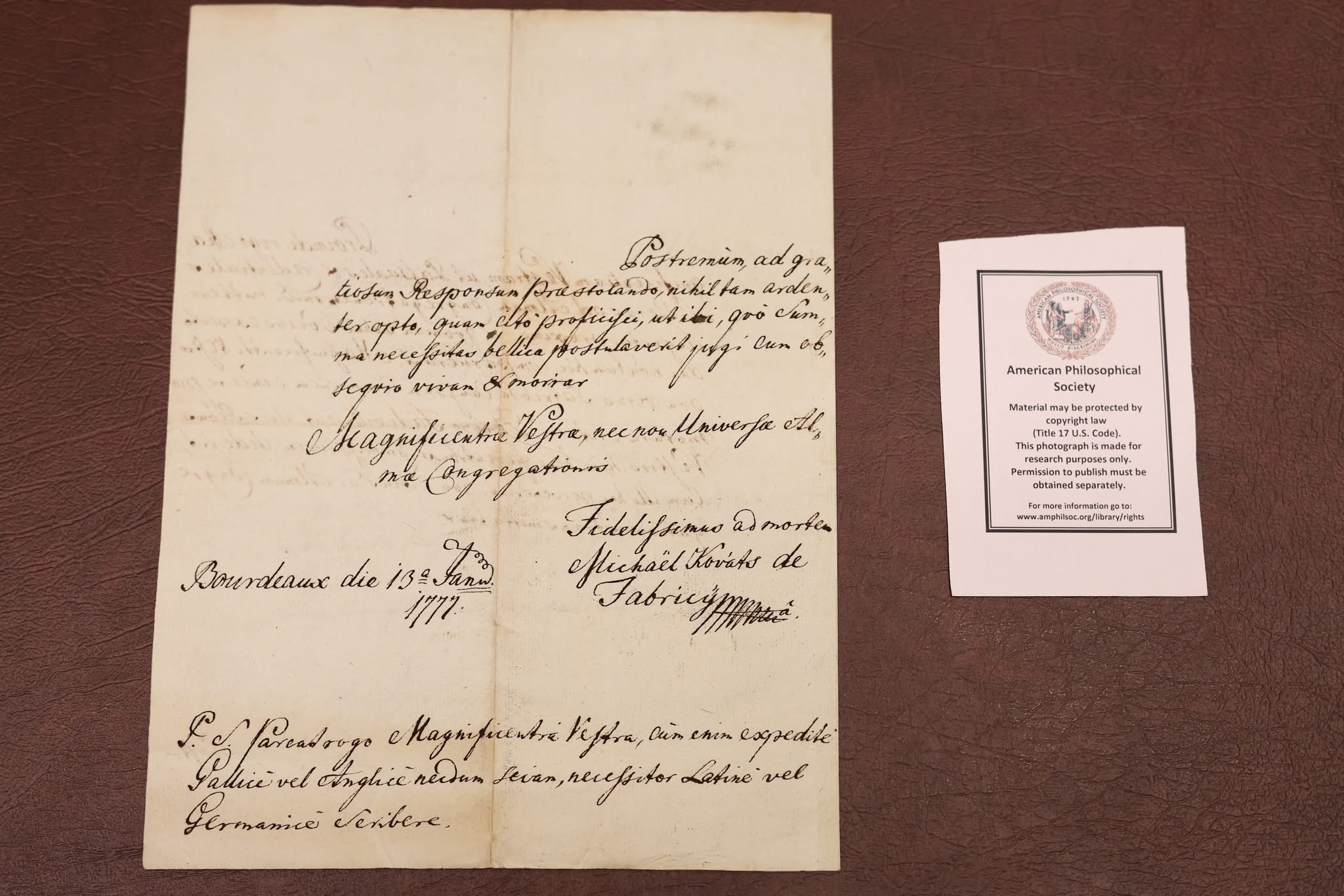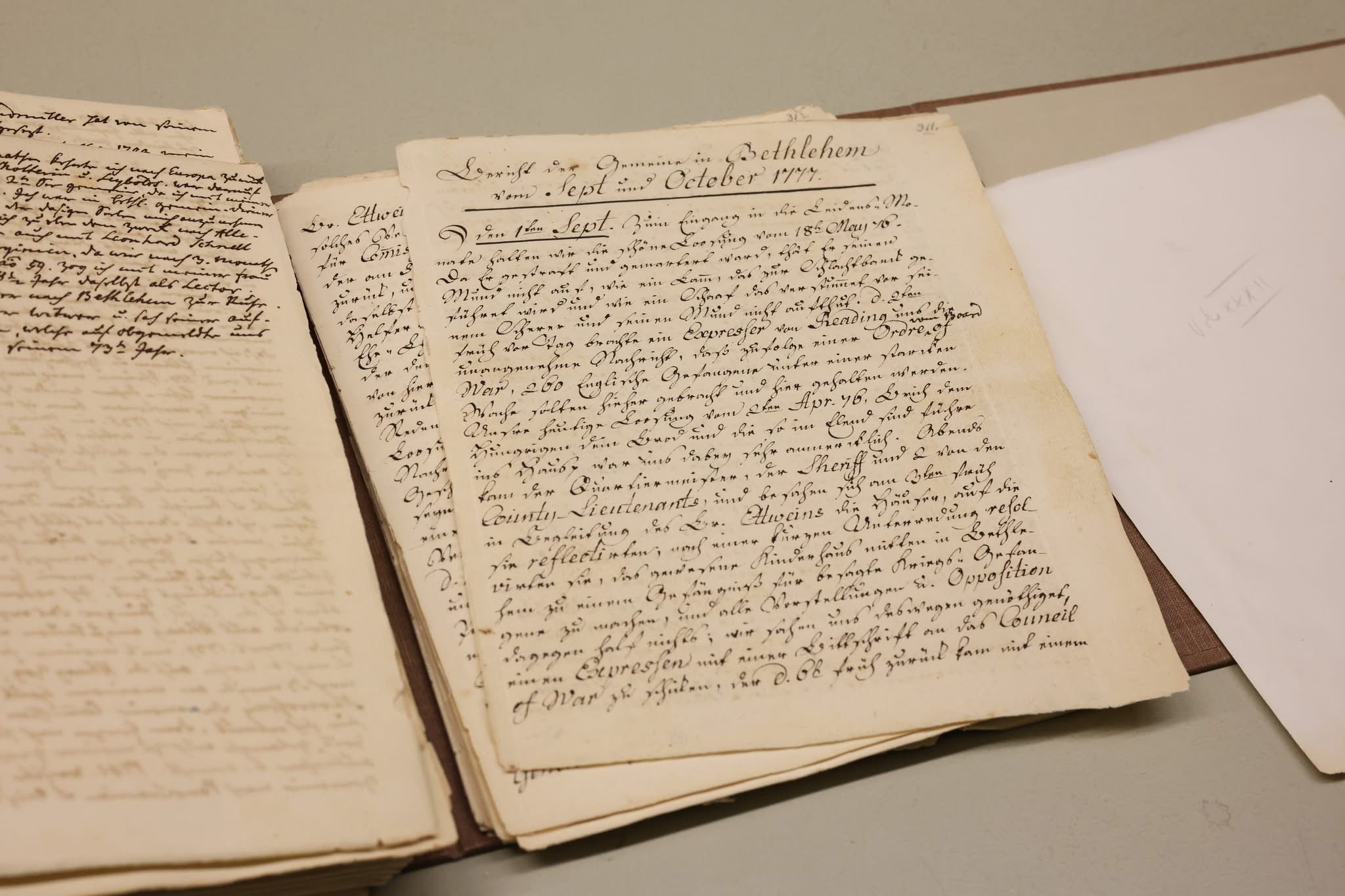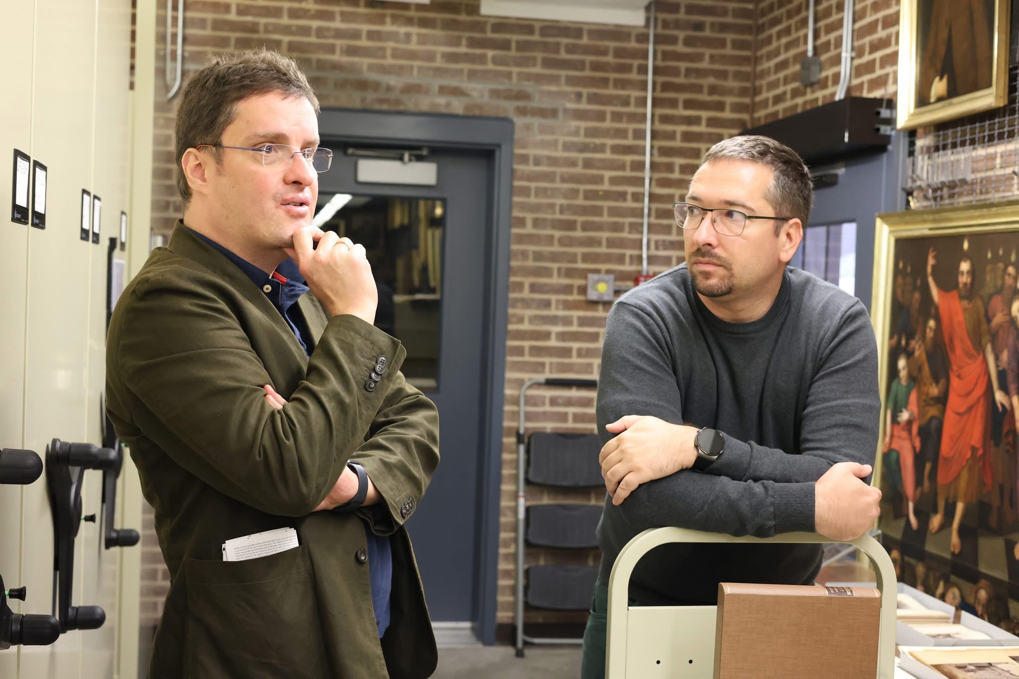 The final leg of the tour on October 31 brought the delegation to Philadelphia’s Museum of the American Revolution. Discussions with museum director Dr. R. Scott Stephenson explored opportunities for collaboration during the America250 celebrations which will include a temporary exhibit on the role of foreigners in the Revolutionary War. The group also had a chance to observe a Michael Kováts commemorative volume and viewed the only surviving Pulaski flag – originally held in Baltimore – currently on loan for the upcoming exhibit. In Bethlehem, the group visited George Gray’s mural in the Hotel Bethlehem which portrays the Pulaski flag’s presentation, and uncovered additional archival material at the Moravian Church Archive linking the flag’s design to Kováts’ Hungarian heritage.