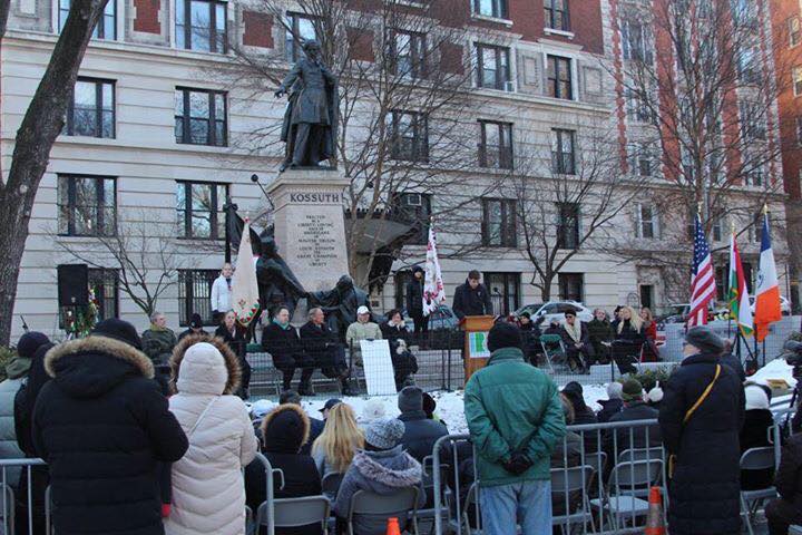 About one hundred Hungarians and Americans joined the celebration with speeches delivered by Former Governor of New York George Pataki, Deputy State Secretary for Hungarian Communities Abroad Dr. Peter Szilagyi, Consul General of Hungary Ferenc Kumin, László Papp, president of the Hungarian American Memorial Committee among others. Fr. László Vas and Reverend Anita Fogarasi blessed the memorial at the end of the ceremony.