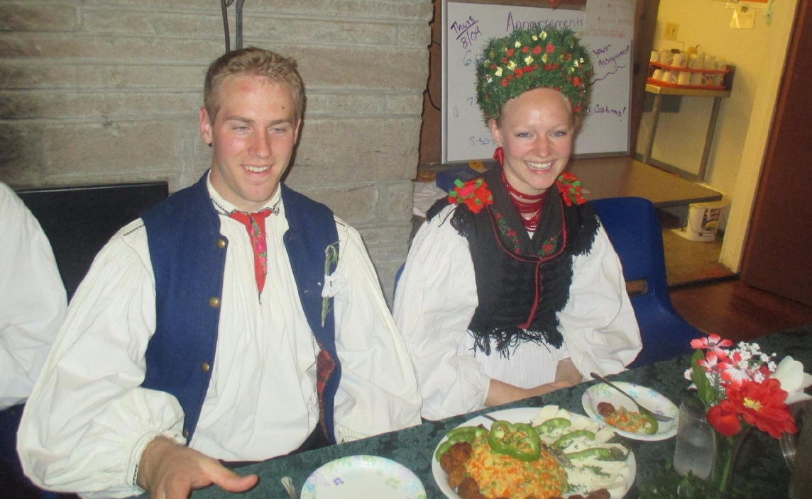 The 2016 Ti Ti Tabor Folk Camp in 2016 focused on one of life’s “Transitions” – the Hungarian folk wedding. The Camp’s staff presented a traditional wedding from the Hungarian village of Szék. Campers were involved in playing various parts and each person was assigned to either the groom’s family or the bride’s. Dance teachers brought an extra suitcase containing traditional Széki wedding apparel. The children helped with painting signs and making props for the wedding. Earlier in the week, Szék dances were taught in the beginner class and wedding songs were presented in singing classes to use during the wedding presentation. The Hungarian teachers also prepared a traditional Hungarian wedding banquet.