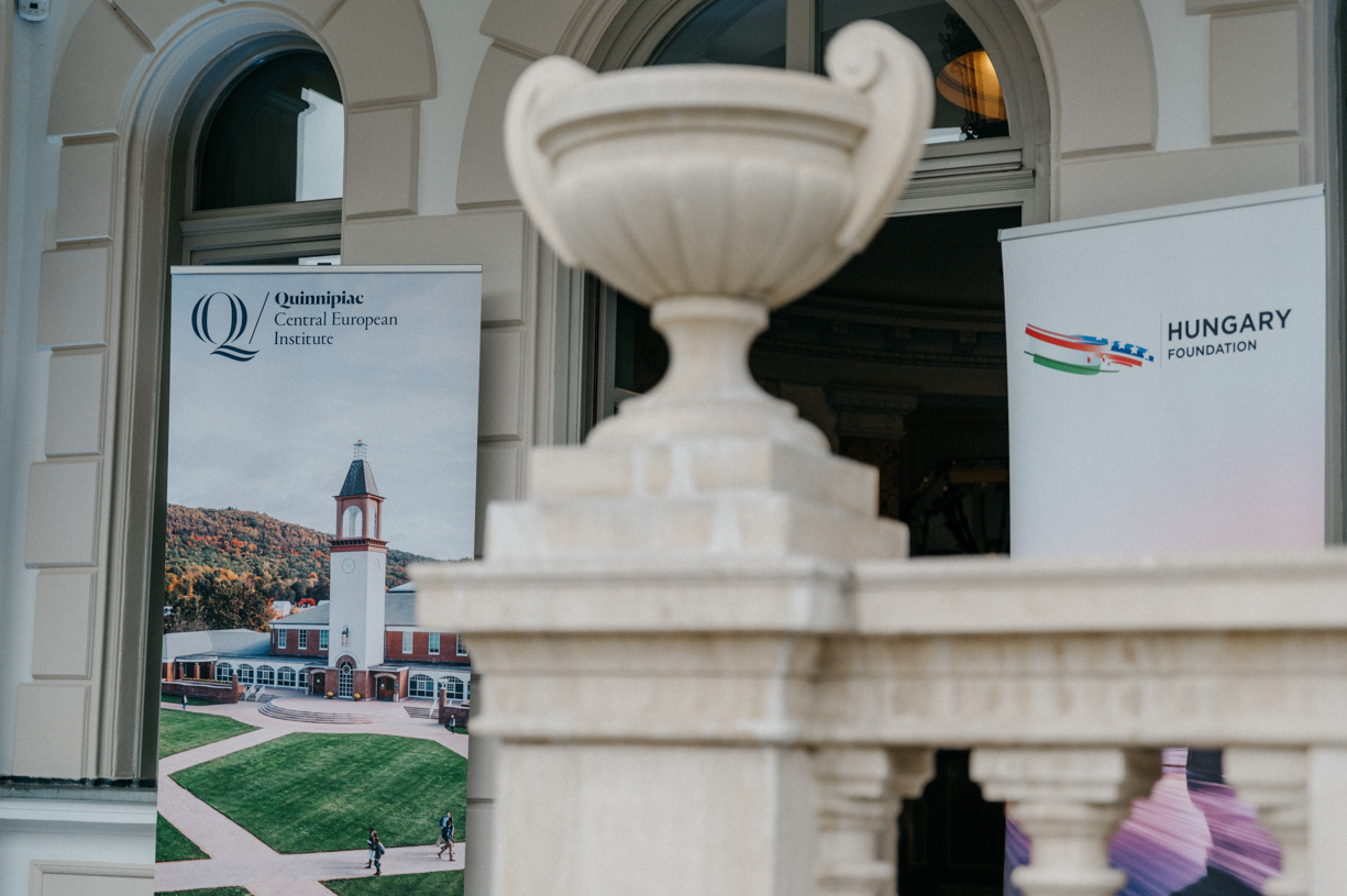 Opening the event, Christopher Ball, Széchenyi Chair in Economics and Director of Quinnipiac University’s Central European Institute (CEI) welcomed guests back to Zebegény. He talked about the recent Hungarian American Business Leaders scholars, starting their journey this year, while he also gave an update on how the current scholars are doing midway through their studies, QU’s Art as Ambassador umbrella program, and Quinnipiac’s partnership with HF and MCC. Among other mentions, he highlighted that the new focus and goal is on getting more Americans from Quinnipiac to come to Hungary. A new program has been launched with Corvinus and Morgan Stanley where students can come to study at Corvinus and work at Morgan Stanley for about 6 months.