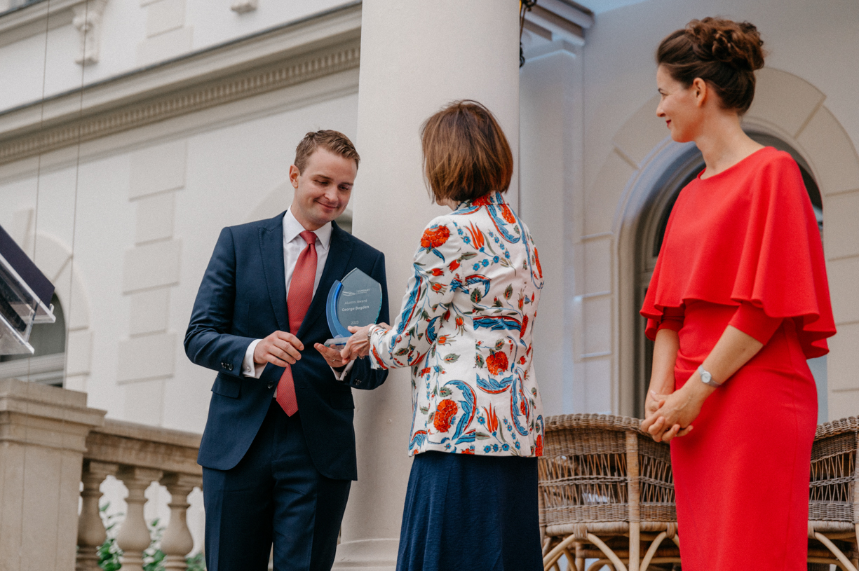 The winner of HF’s Alumni Leadership Award was George Bogden, 2020-2021 BFP Fellow. The Alumni Leadership Award is based on professional, academic, and community engagement excellence. Alumni were asked to send in their suggestions for an alumnus who’s professional, academic, and community engagement excellence. HF created this award because we believe in leading by example.